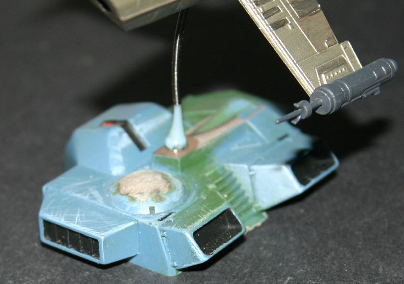 Die Bae ist das Rückteil vom 1/100er Kriegshammer, was ich recht passend fand und fix aus der Box gezaubert habe. Die Halterung besteht aus einem Stück gezogenen Gußast mit einem Federschlauch drum. Base wird selbstredend noch bemalt werden, denke irgendwo zwischen Mittel bis dunkelgrau wird es werden.
