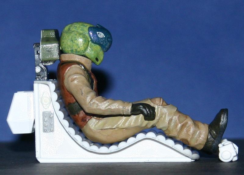 Die verwendeten Teile sind derzeit einer altes Lampengehäuse einer Tischlampe, ein ehemaliger Klorollenhalter und der zur Zeit im Aufbau befindliche Pilotensitz für meinen ehemaligen Ma.K. Falkenpiloten.