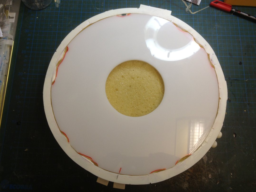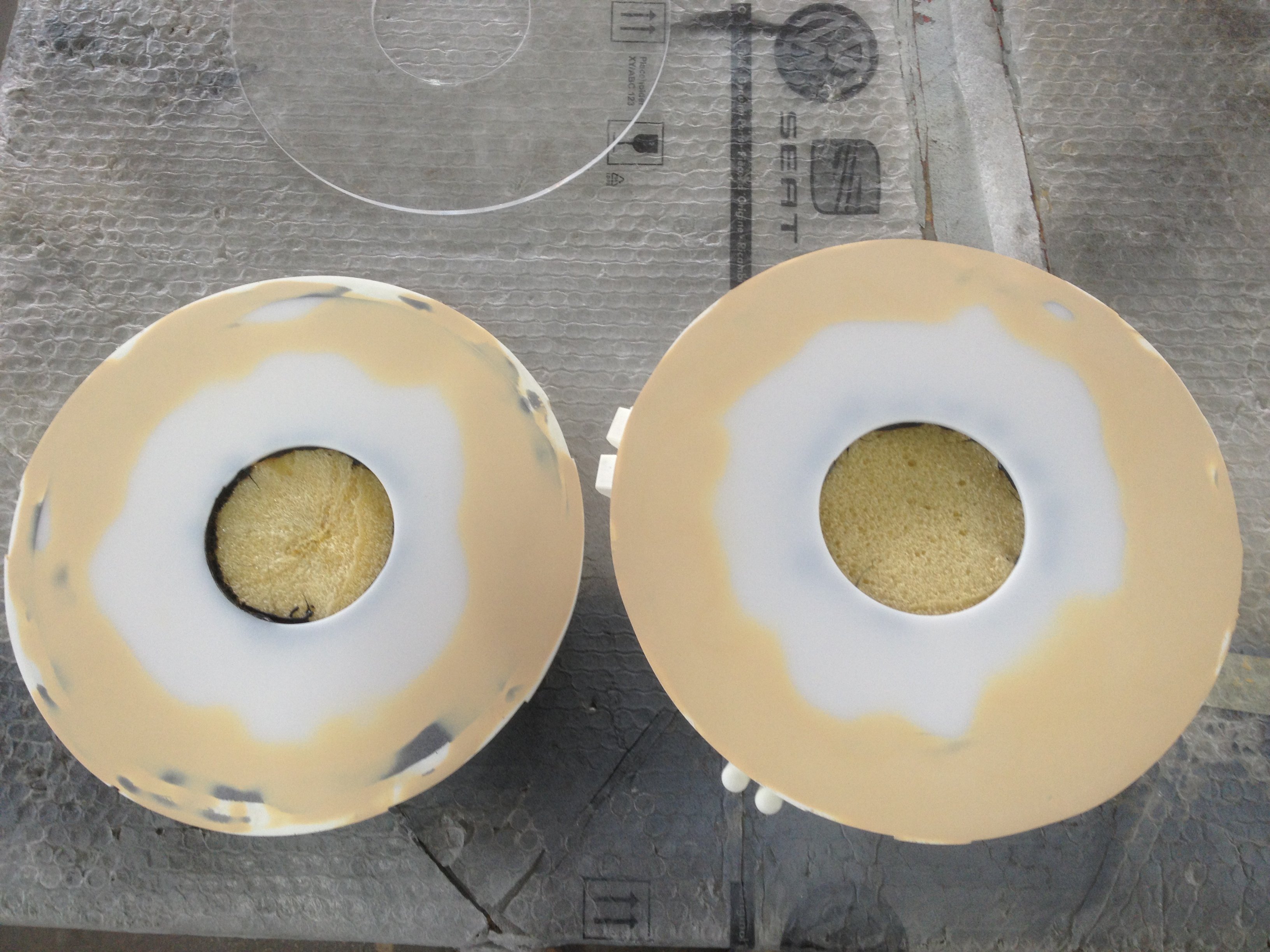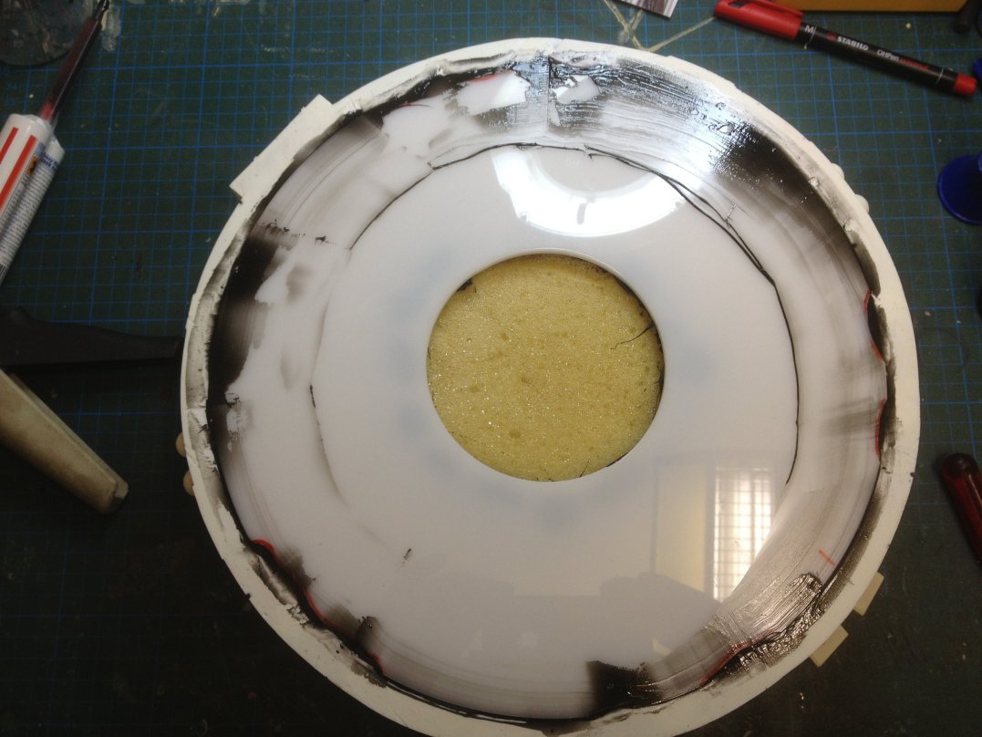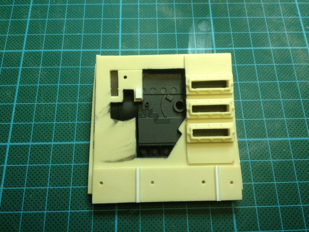 Die abgeformte zweiteilige Abdeckung wurde gepimt und von innen vorbemalt. Sie dient als Lautsprechergehäuse:
