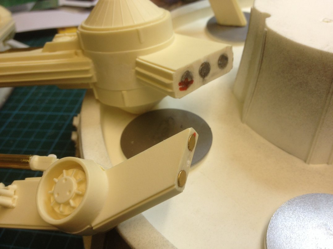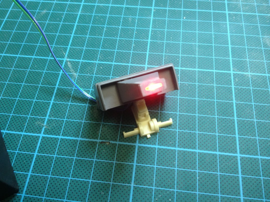 Die Laserkanone aufgebohrt und ne rote LED samt Kabel verlegt: