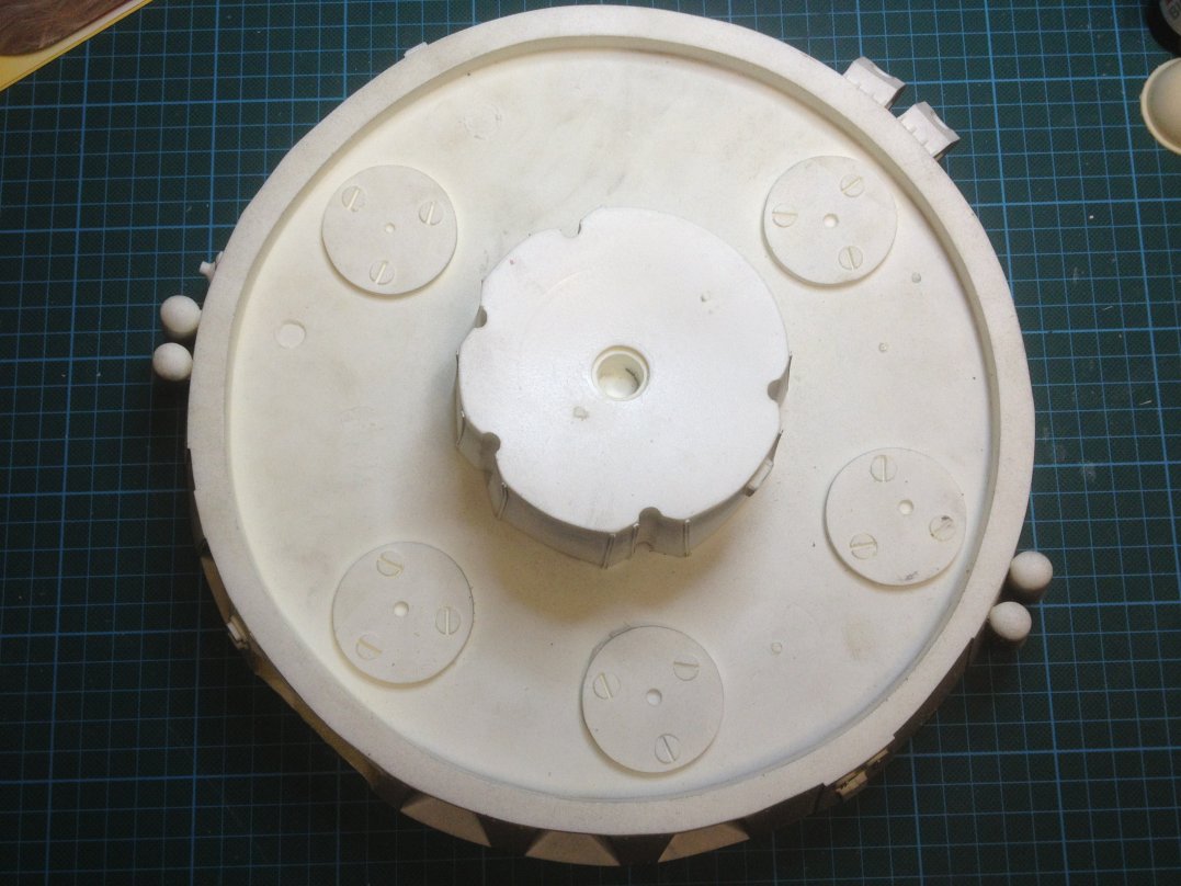 Vom Unterboden wurden die Schraubenabgüsse weggeschliffen und Stahlplättchen im gleiche Durchmesser wurden verklebt: