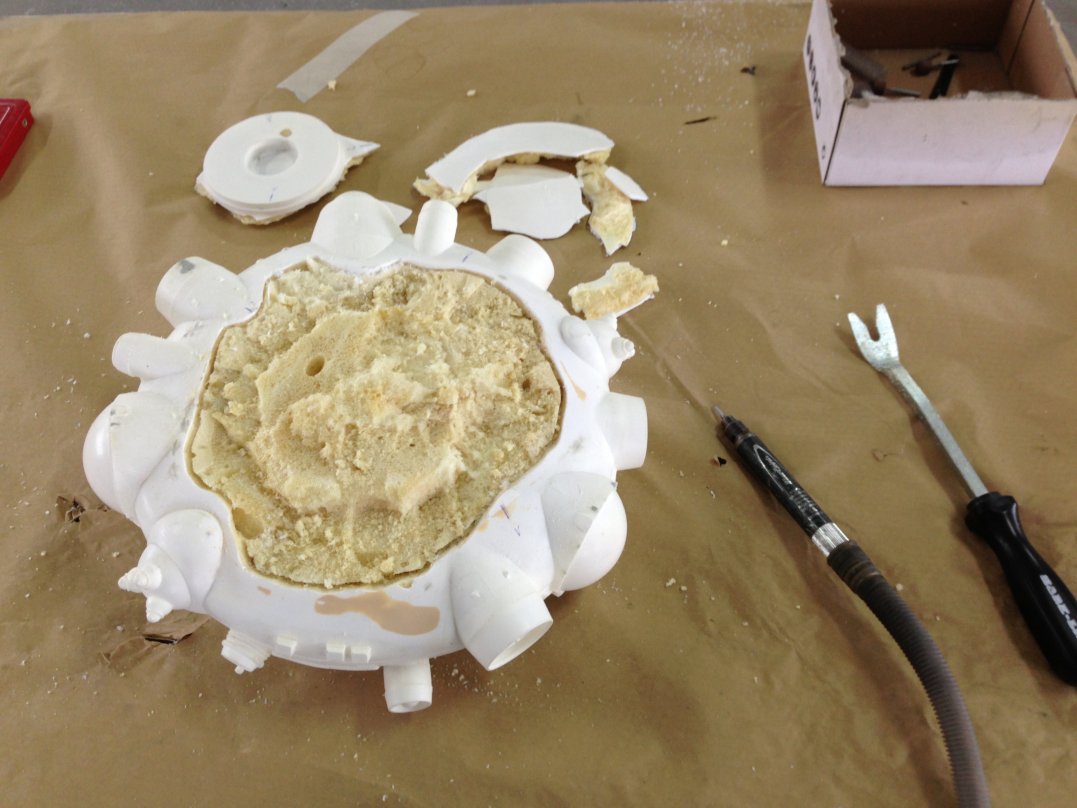 Dann mit der groben Flex eine Lage Schaum entfernt:
