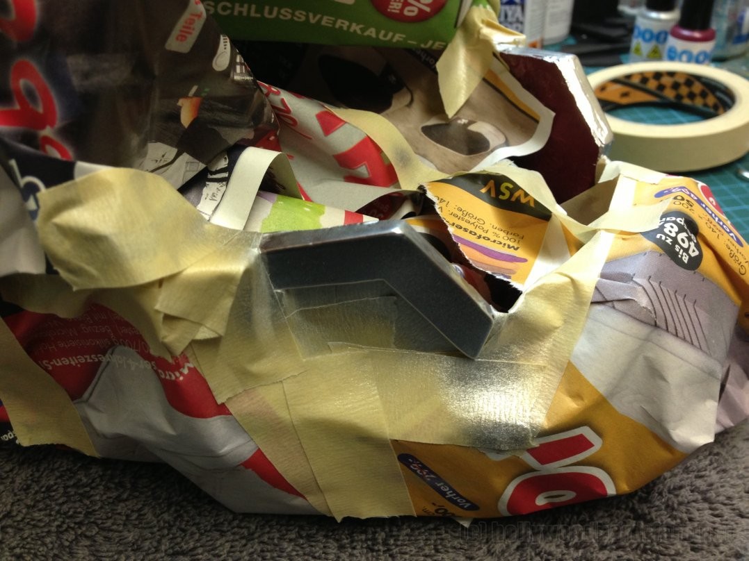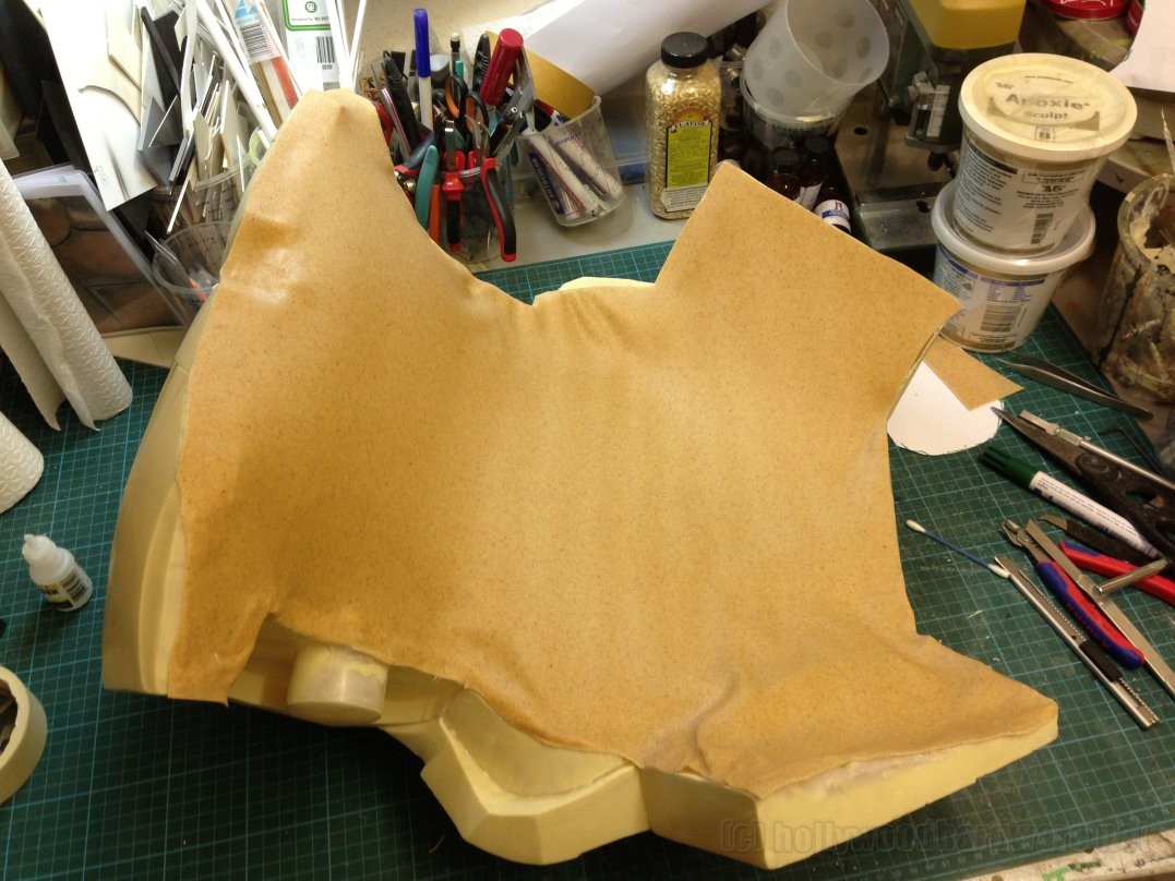 Ich wollte nicht, dass man von der Seite auf das Fiberglas gucken kann, deshalb habe ich eine Möglichkeit gesucht das zu kaschieren. Da fiel mir ein, dass ich ja noch Worbla für den Krauss da hatte: