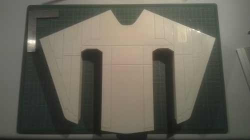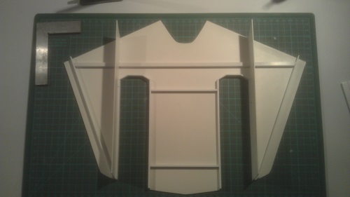 Das Heck wurde weiter bearbeitet. Die schrägen Einlässe sind reingekommen und Führungszapfen zum Positionieren des ober und unterteils. In den Seitenwänden des Hecks sind hinter den Hauptwänden noch schwarzer PS gekommen um die Lichtdurchlässigkeit zu dezimieren.....