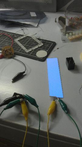 Die Folie wird nur an einen Konverter angeschlossen und das ganze lässt sich gut mit einem 12 V Netzteil betreiben.