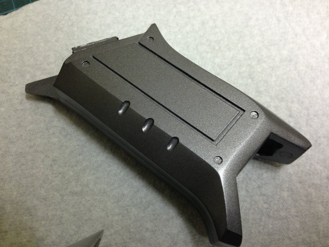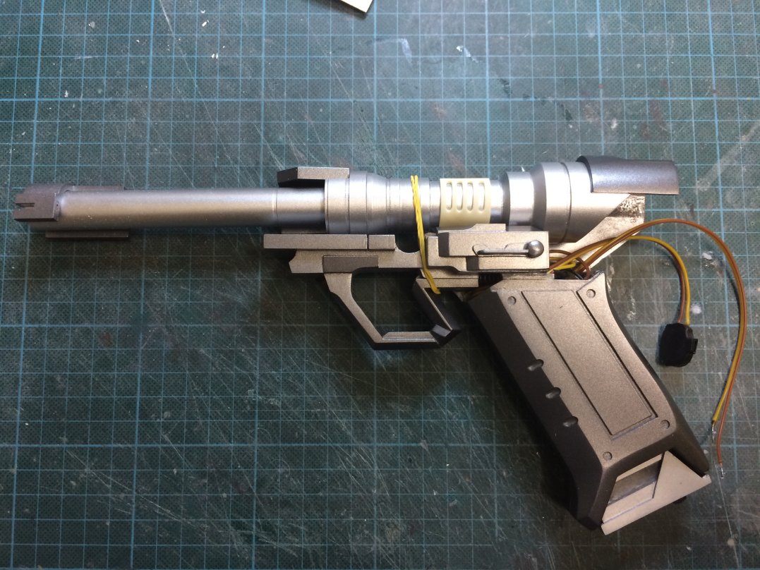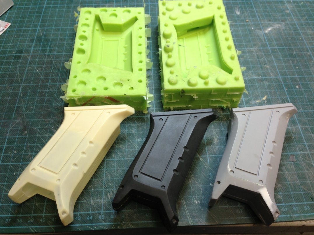 Schlussendlich hab ich von dem dritten eine schnelle Silikonform gemacht, abgegossen und das noch nicht ausgehärtete Teil mit Klebeband auf der Rundung fixiert.