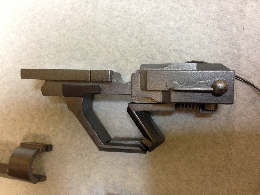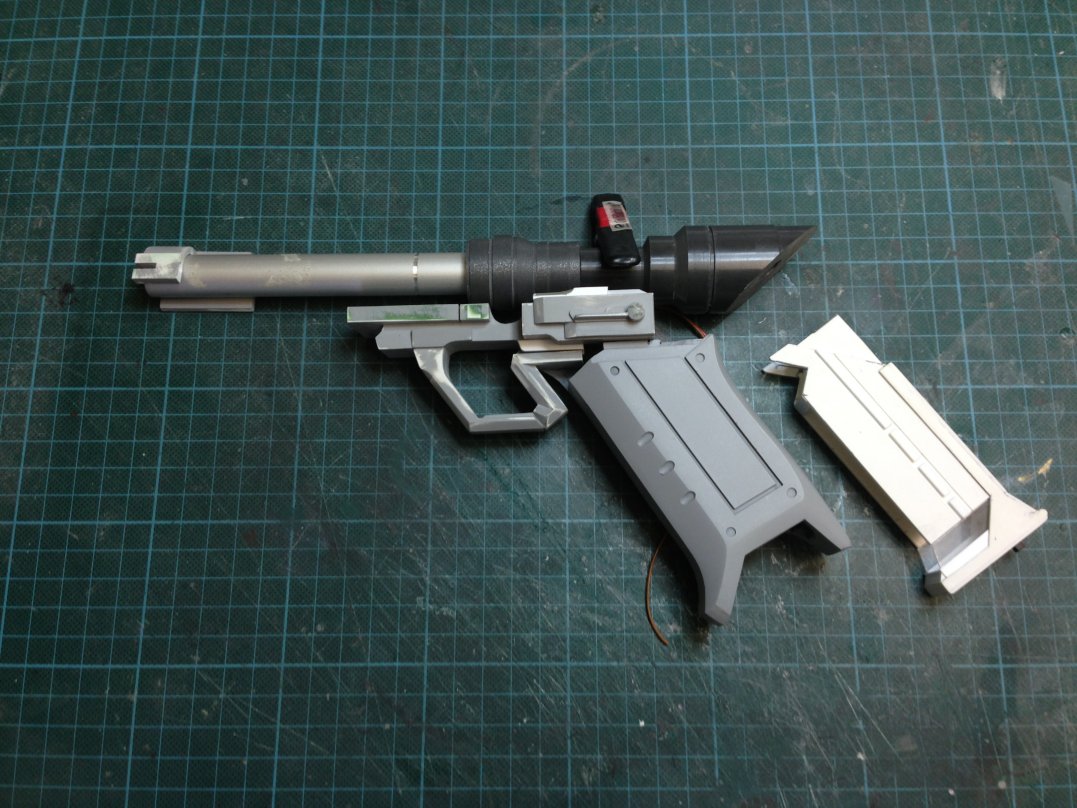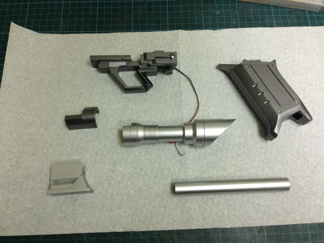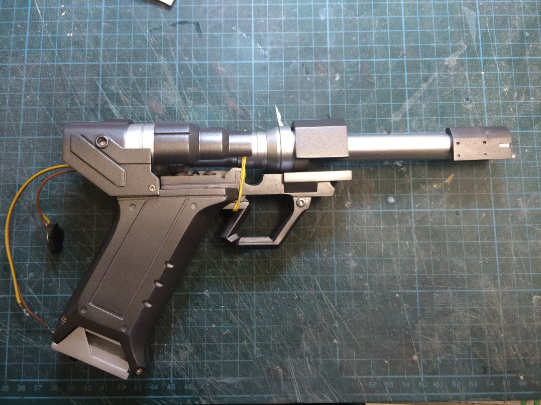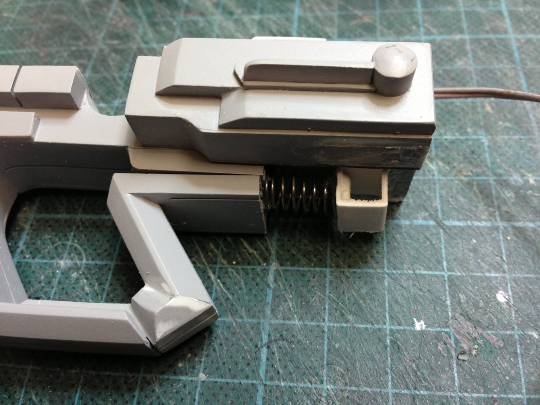 1) Die in eine grade Platte übergehende Rundung and Hinterteil der Pistole.