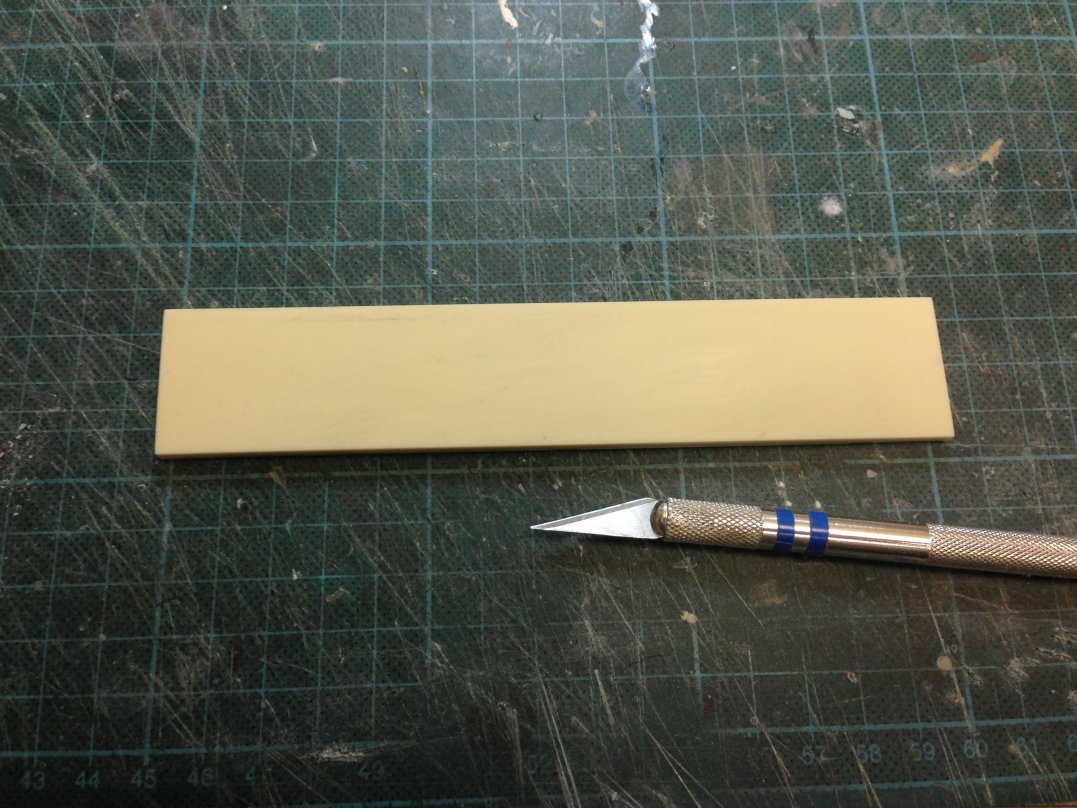 Eine Mold mit den richtigen Maßen aus PS gebaut, Resin reingegossen, Oberseite plangeschliffen, Stücke in Form gesägt und zusammengeklebt.