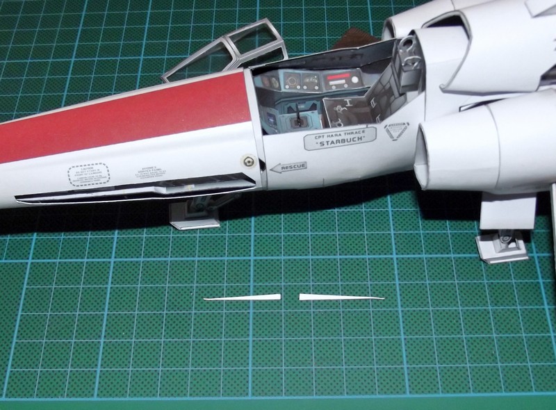 Aus übriggebliebenem Papier schnitt ich zwei Dreiecke aus und klebte diese an die Cockpitwanne.