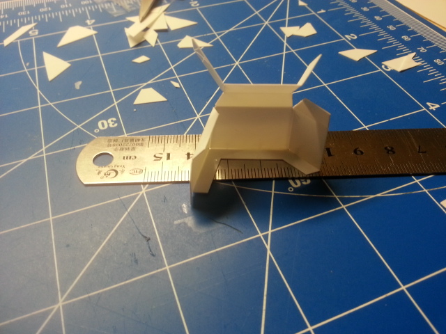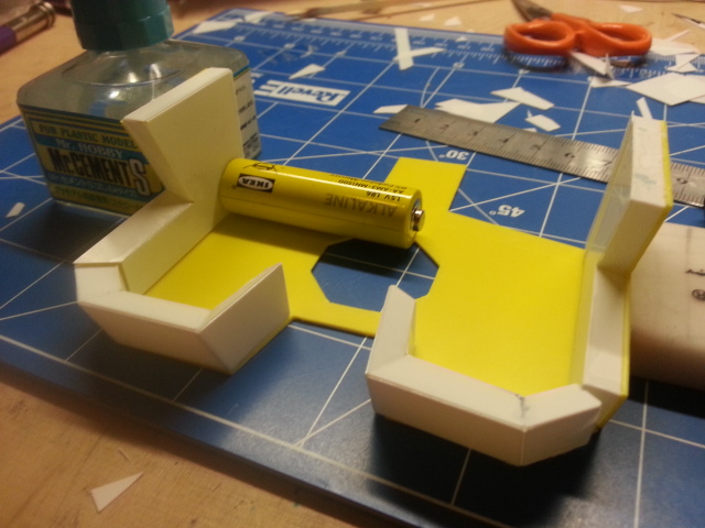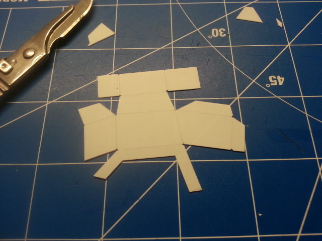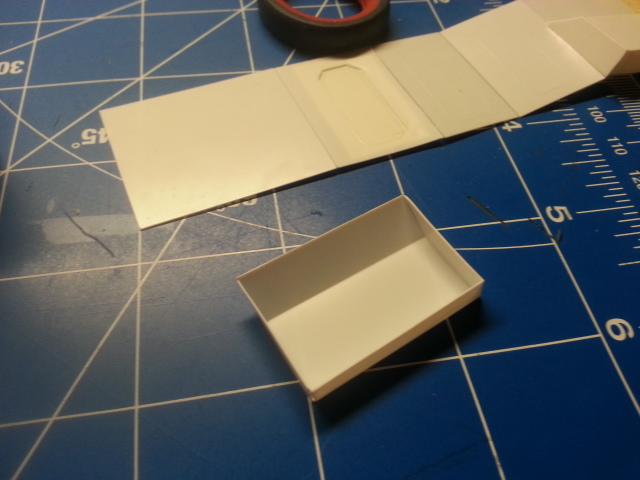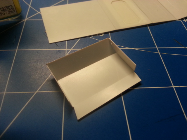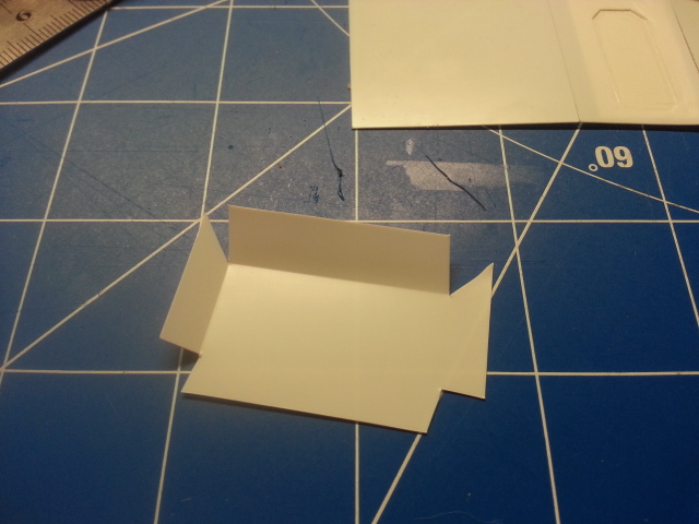 Eine eigentlich sehr schöne Eigenschaft dieses hauchdünnen Sheets war hier gleichzeitig ein Problem: Das Anritzen und Abknicken klappt sehr leicht. Durch leichtestes Anritzen kann man sehr schön definierte scharfe Kanten biegen. Aber: Ratzfatz bricht so eine Kante dann auch ab. Im Gegensatz zu PET-G ("Vivak") hat PS praktisch keine "Scharniereigenschaften".