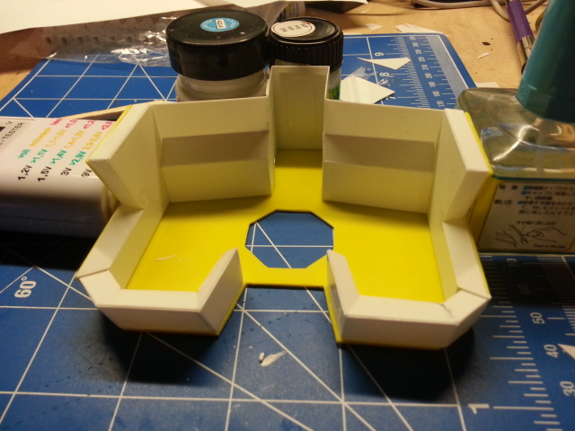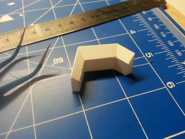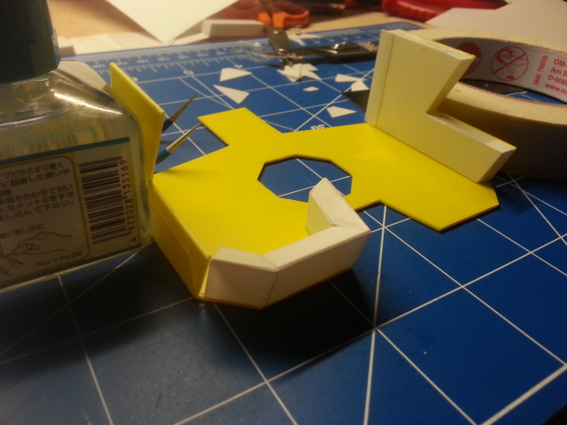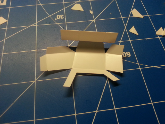 Das Hauptproblem ist das saubere Übertragen der Konturen. So einfache Formen wie die erste Konsole verzeihen schon mal einen Versatz von einem halben Millimeter. Bei der komplexeren zweiten Konsole addieren sich aber die Fehler mit jedem Faltvorgang, und die letzte finale Klebestelle wird dann Katastrophe.