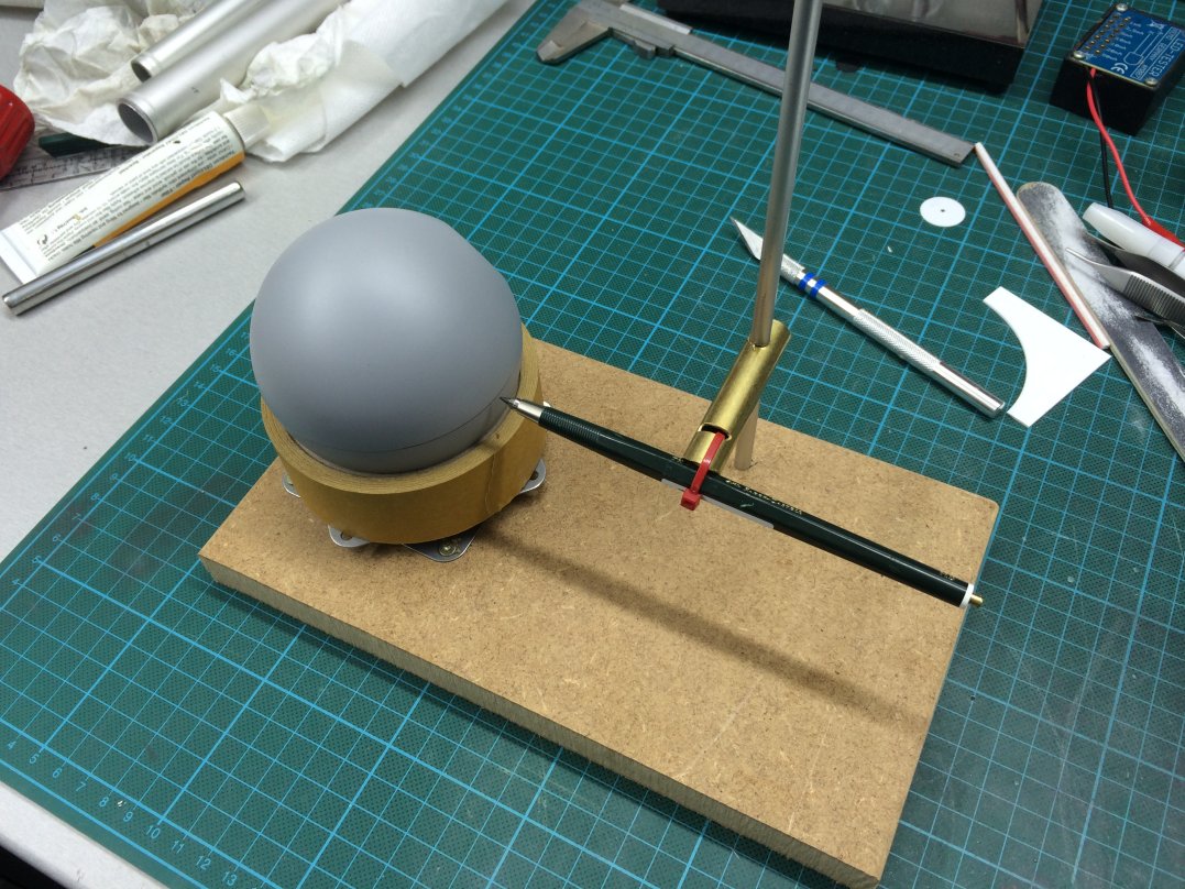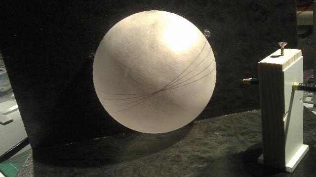 Wenn du solche Halbschalenkugeln aus dem Bastelladen nimmst, wirst du keine Schwierigkeiten haben genaue Horrorzentalen wie auch vertikalen Linien zu bekommen. Dein letztes Bild ist wirklich einem Höhenreißer sehr nahe. Was hast du als Grundmaterial für die Kugel ??